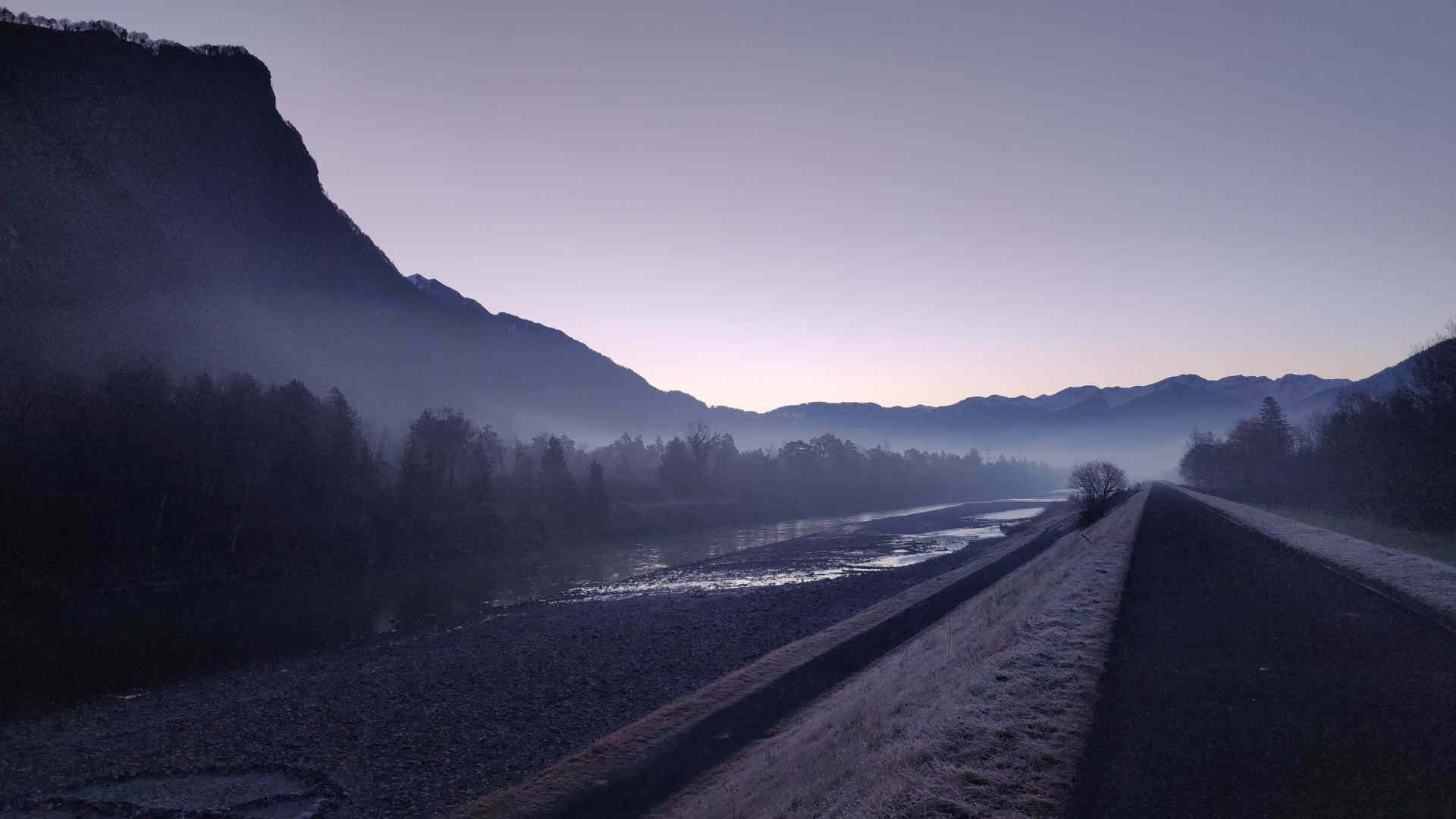 Das Ziel lautet somit Davos Wolfgang. Nur eben, 10.5 Stunden ohne Pause. Überdies 1700 Höhenmeter, könnte irgendwie knapp werden. Aus diesem Grund beschliesse ich, den Zug um 05:04 ab Egg zu nehmen, um kurz nach sieben Uhr in Sargans starten zu können. Es ist noch dunkel in Sargans, eine sanfte Dämmerung und das Navi weisen mir den Weg Richtung Rhein.