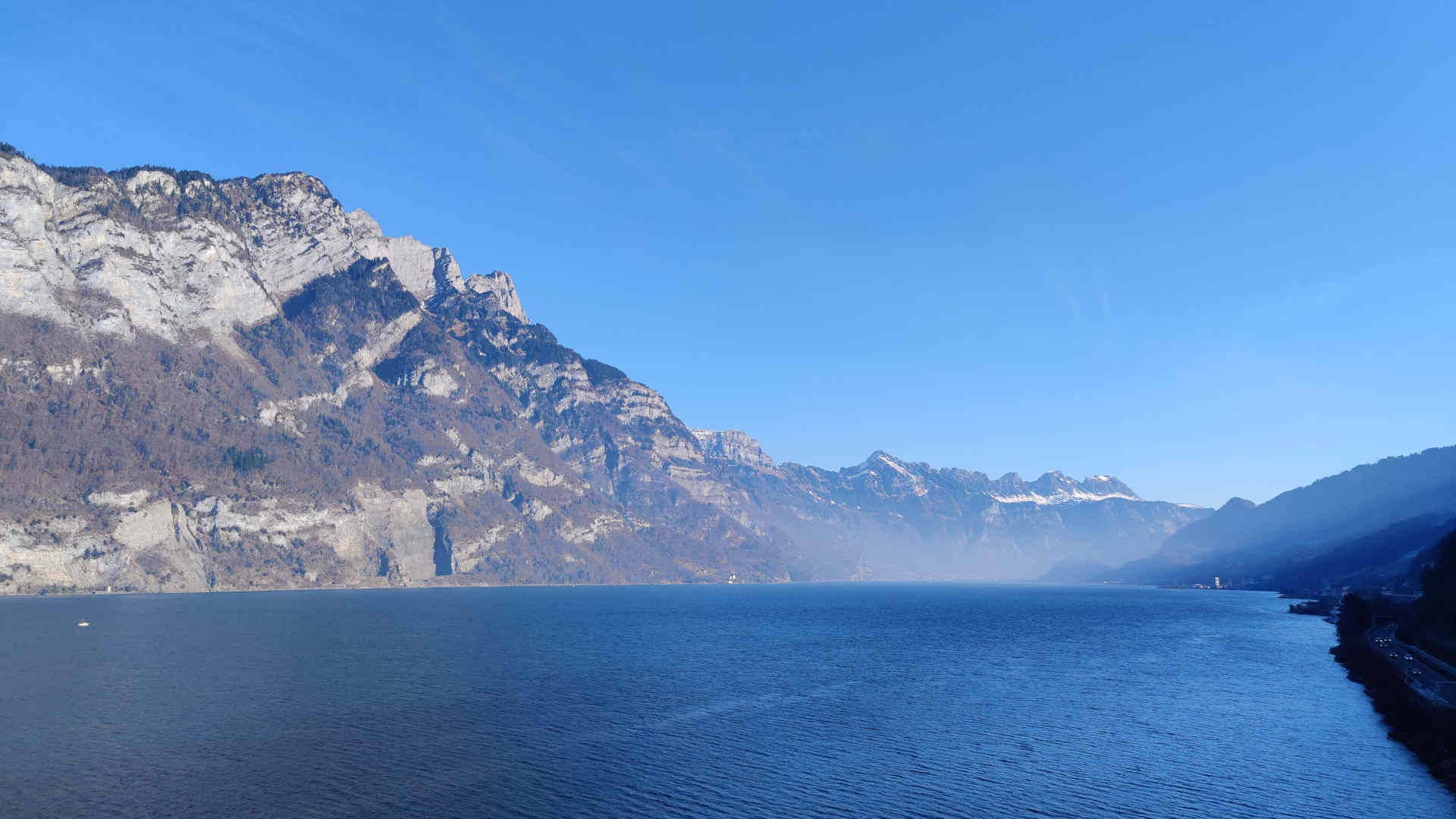 Nur sehe ich auf dem Navi, dass der Weg ein paar Kilometer länger wäre und überdies über Walenstadtberg führte. Den rot-weiss-rot markierten Weg unternahm ich vor fast vier Jahrzehnten einmal im Sommer. Ich habe die Route nicht als besonders schwierig in Erinnerung, aber ein Wagnis wollte ich auch nicht eingehen, auch wenn die Sonne auf der anderen Seeseite frohlockte.